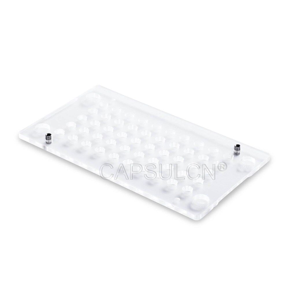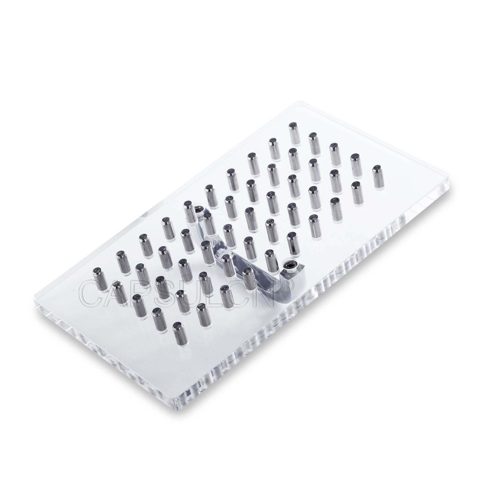 Manual capsule filler machine CN-50CL, with 50 holes, 8 sizes (000#,00#,0#,1#,2#,3#,4#,5#), easier to operate and can avoid the breakage of capsules because of special flute design and high precision.