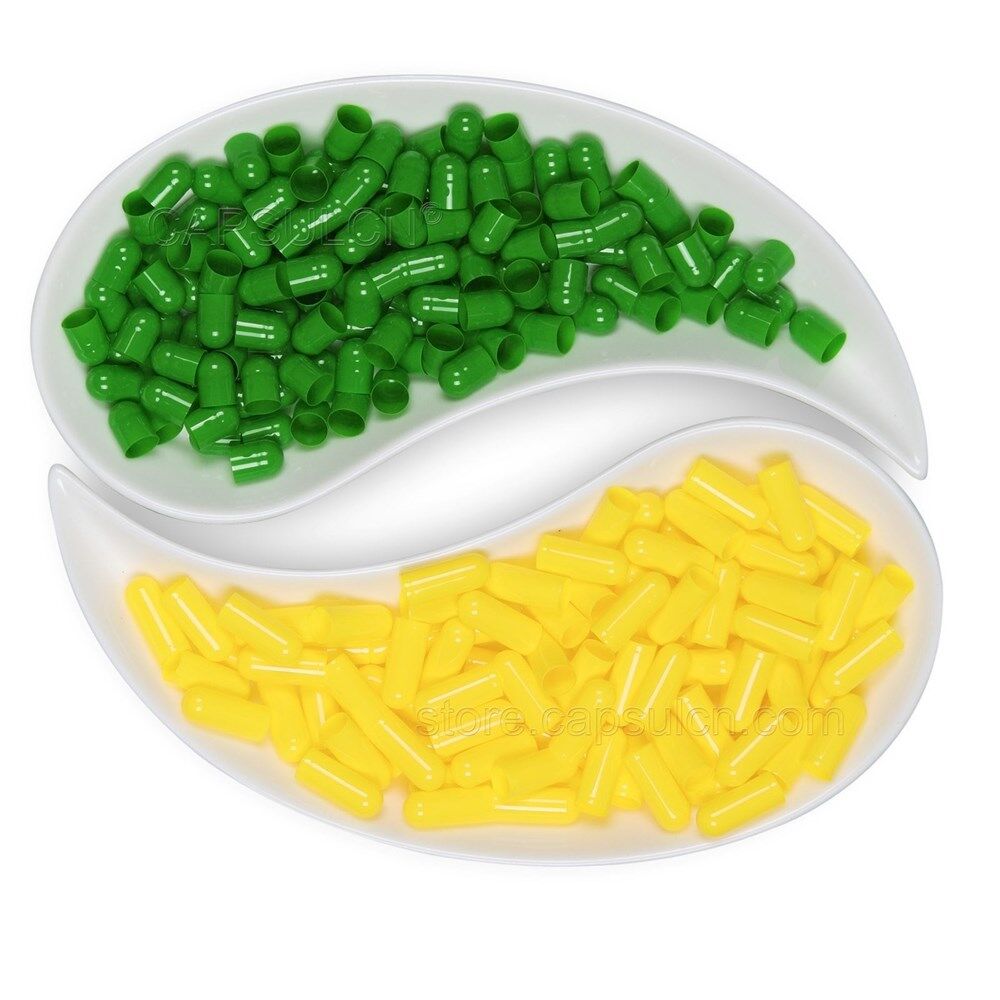 Size 0 apple green yellow empty gelatin capsules 100% hide gelatin,derived from bovine raw materials Outstanding quality, in accordance with GMP standards Suitable for pharmaceuticals health and nutrition products