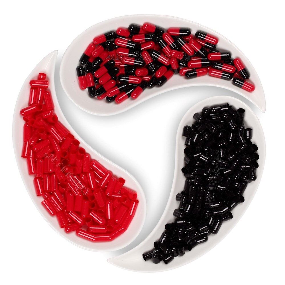 Size 0 black red empty gelatin capsules 100% hide gelatin,derived from bovine raw materials Outstanding quality, in accordance with GMP standards Suitable for pharmaceuticals health and nutrition products