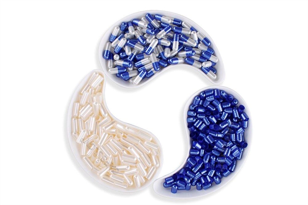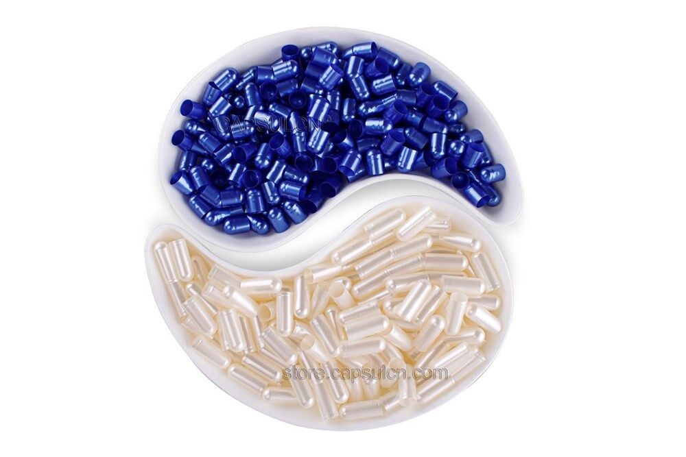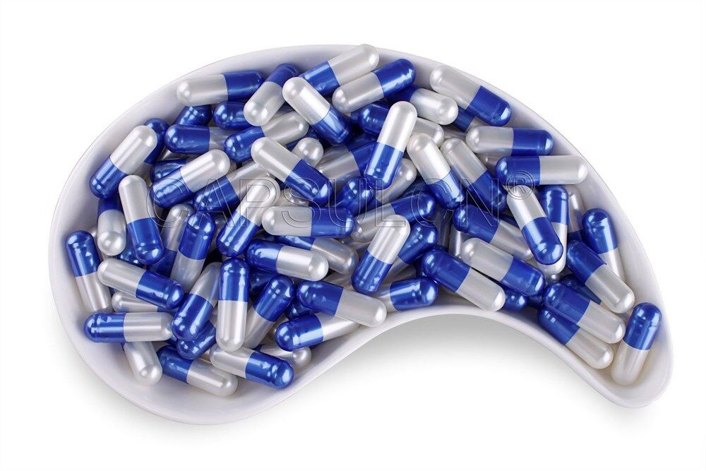 Size 0 Blue White Metallic Empty Gelatin Capsule