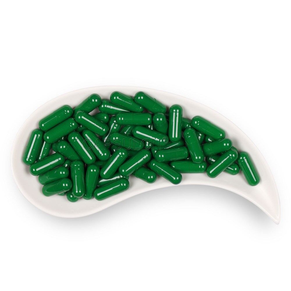 Size 0 dark green empty gelatin capsules 100% hide gelatin,derived from bovine raw materials Outstanding quality, in accordance with GMP standards Suitable for pharmaceuticals health and nutrition products Keep away from direct sunlight, hot water and high temperatures Do not fill capsules with any liquid suspension because they will dissolve prior to consumption