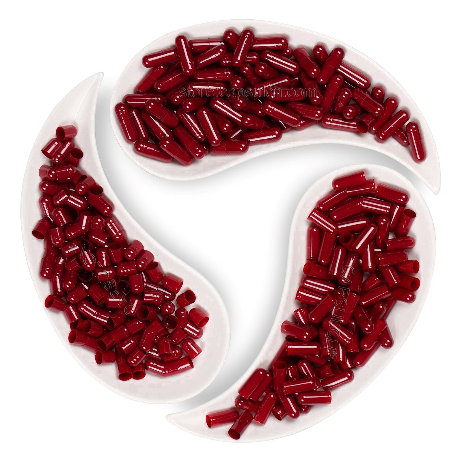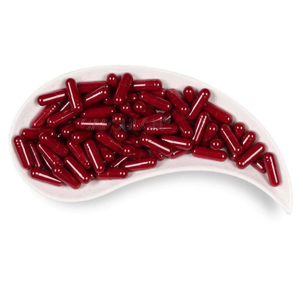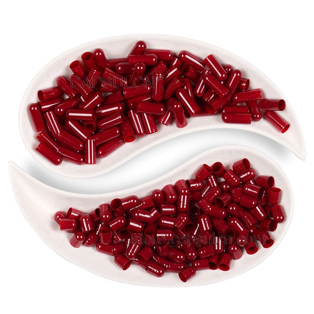 Size 0 Dark red empty gelatin capsules 100% hide gelatin,derived from bovine raw materials Outstanding quality, in accordance with GMP standards Suitable for pharmaceuticals health and nutrition products Keep away from direct sunlight, hot water and high temperatures Do not fill capsules with any liquid suspension because they will dissolve prior to consumption