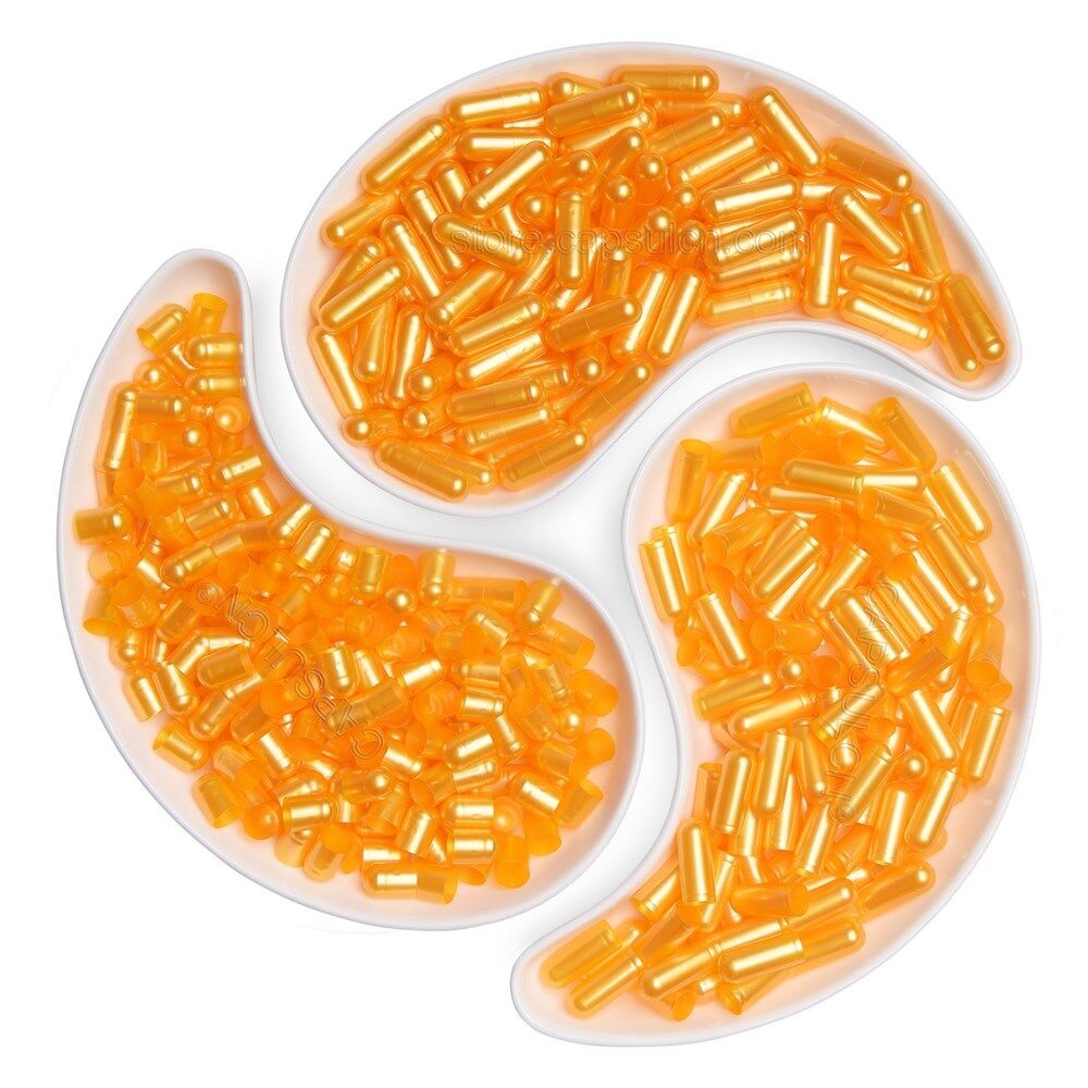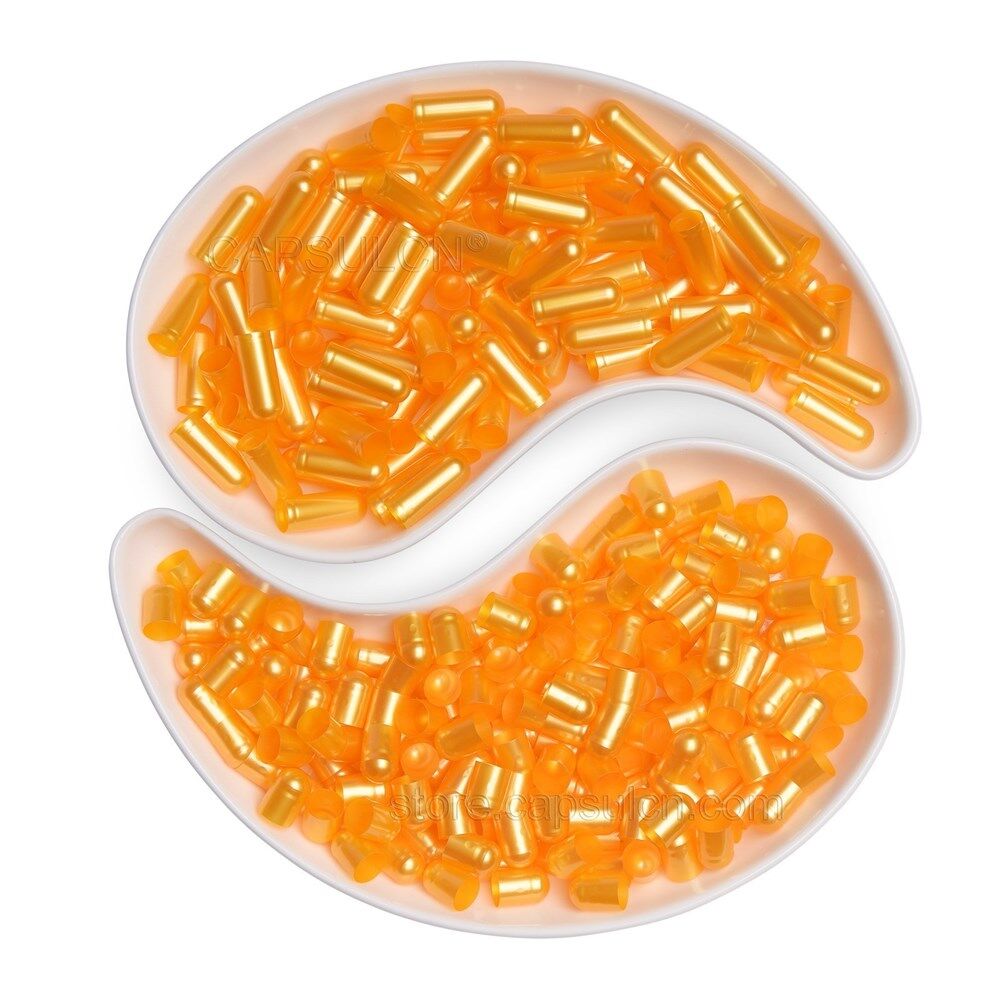Size 0 Golden yellow empty gelatin capsules 100% BSE Free (Derived from bovine raw materials) 100% Hide gelatin derived from the skin 100% Preservative Free Non GMO, Allergen Free, & Gluten Free Outstanding quality, in accordance with GMP standards