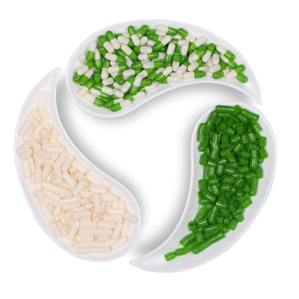 Size 0 Light Green White Empty Vegetarian Capsules 100% vegetarian derived from HPMC Pure natural plant Fiber, care for your health Irritant-free and Preservative-free Suitable for different races