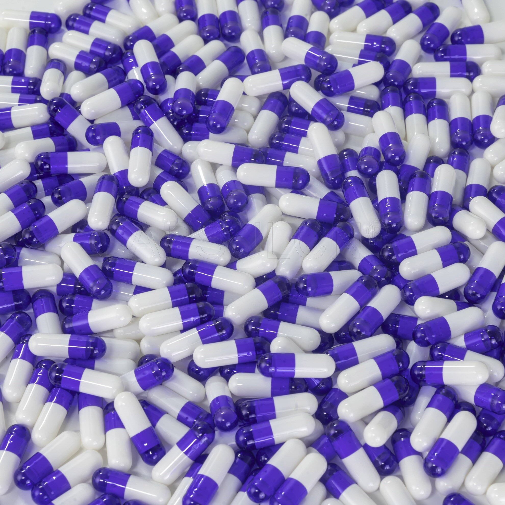 Size 0 translucent purple white empty gelatin capsules cost effective solution for quality control of ingredients improve product recognition protect ingredients from light & hide unpleasant taste or appearance