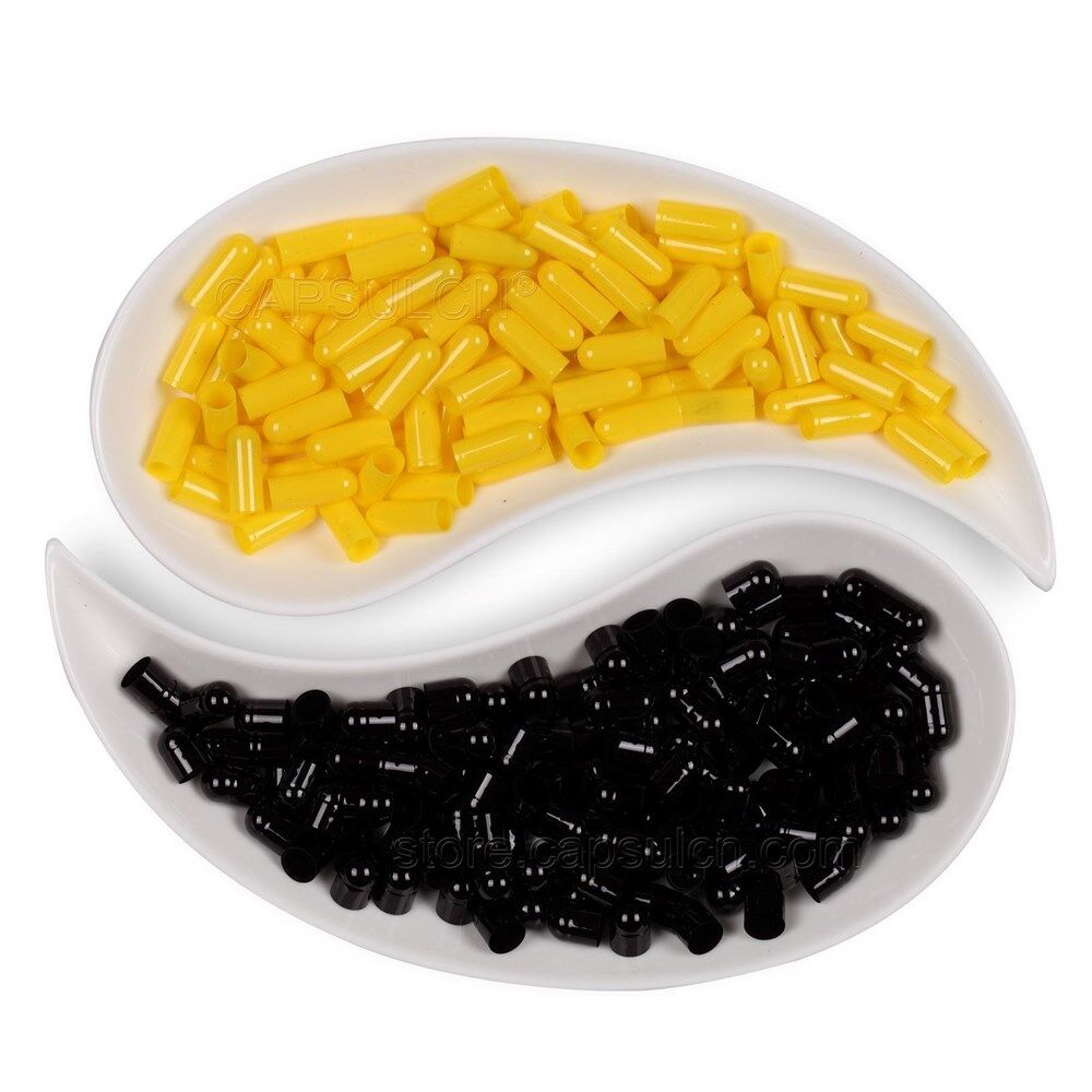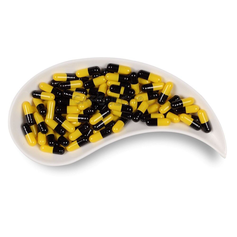 Size 00 black yellow empty gelatin capsules variety of colors/sizes available cost effective solution for quality control of ingredients improve product recognition protect ingredients from light & hide unpleasant taste or appearance