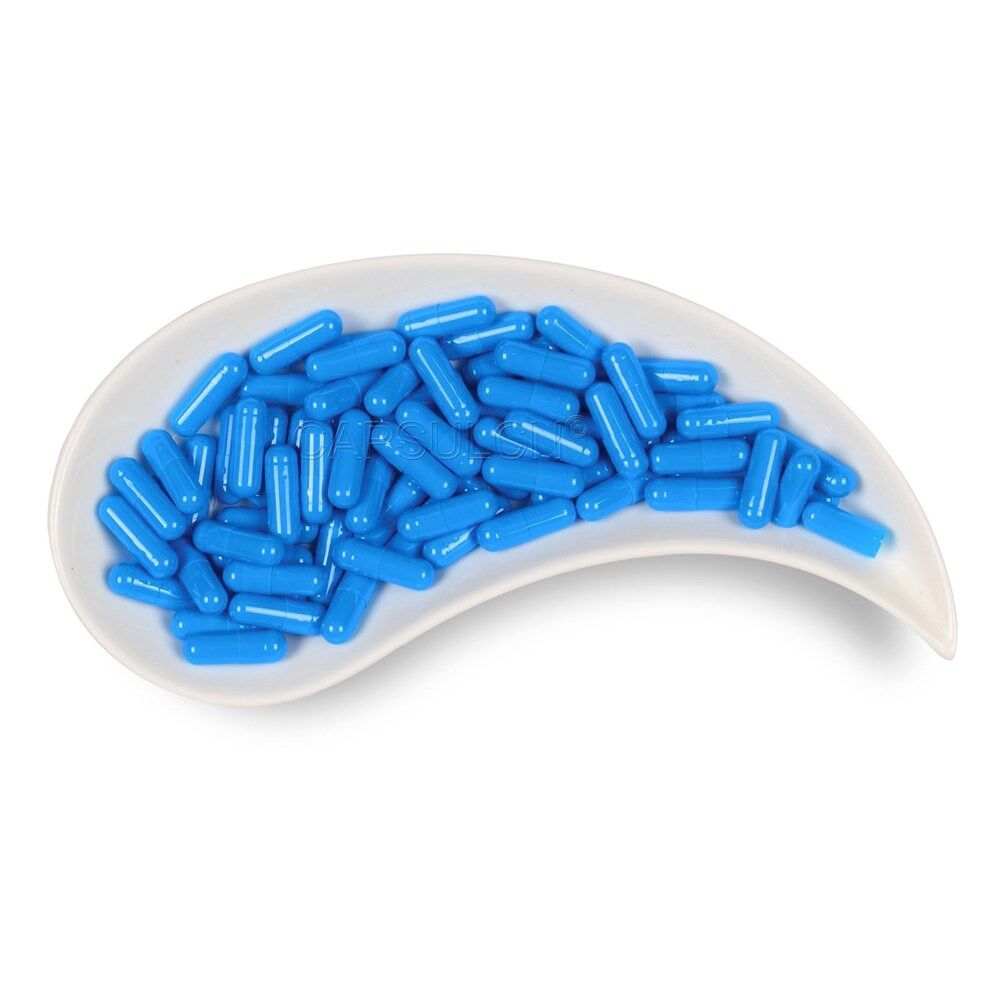 Size 00 blue empty gelatin capsules 100% hide gelatin,derived from bovine raw materials Outstanding quality, in accordance with GMP standards Suitable for pharmaceuticals health and nutrition products Keep away from direct sunlight, hot water and high temperatures Do not fill capsules with any liquid suspension because they will dissolve prior to consumption