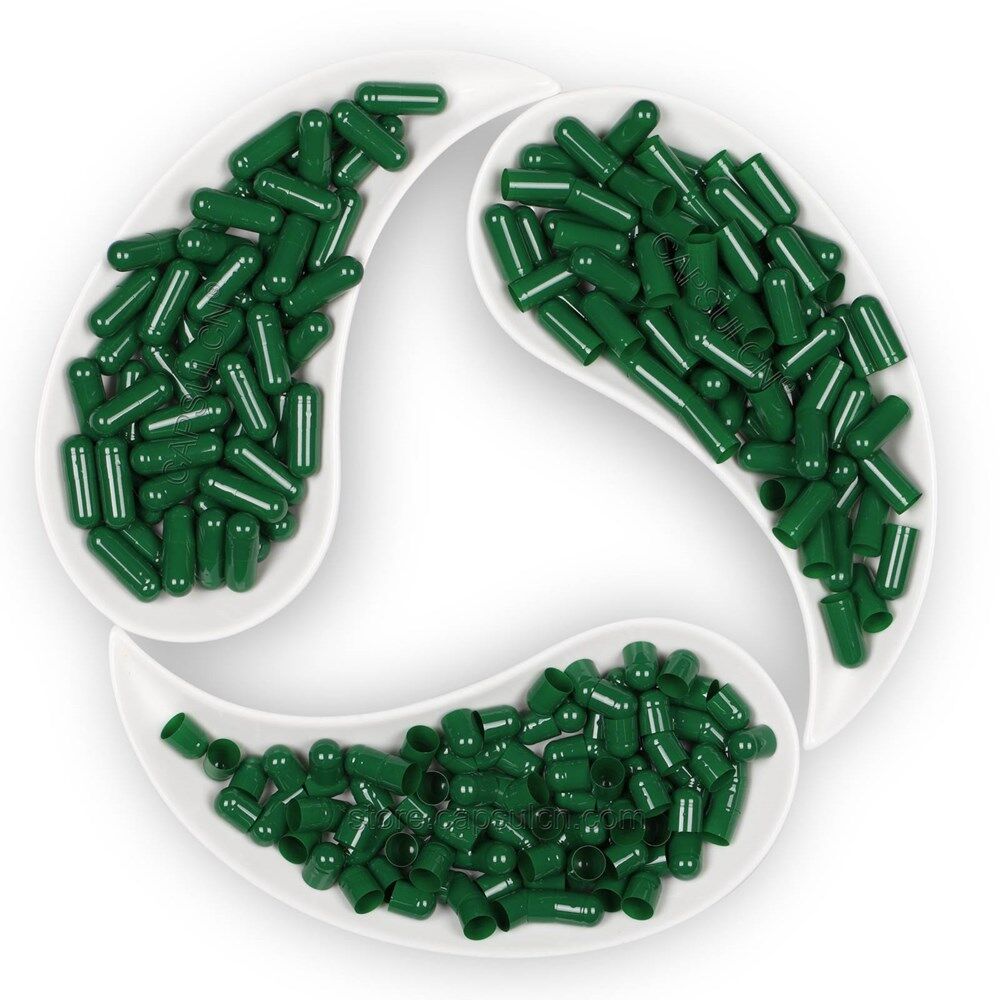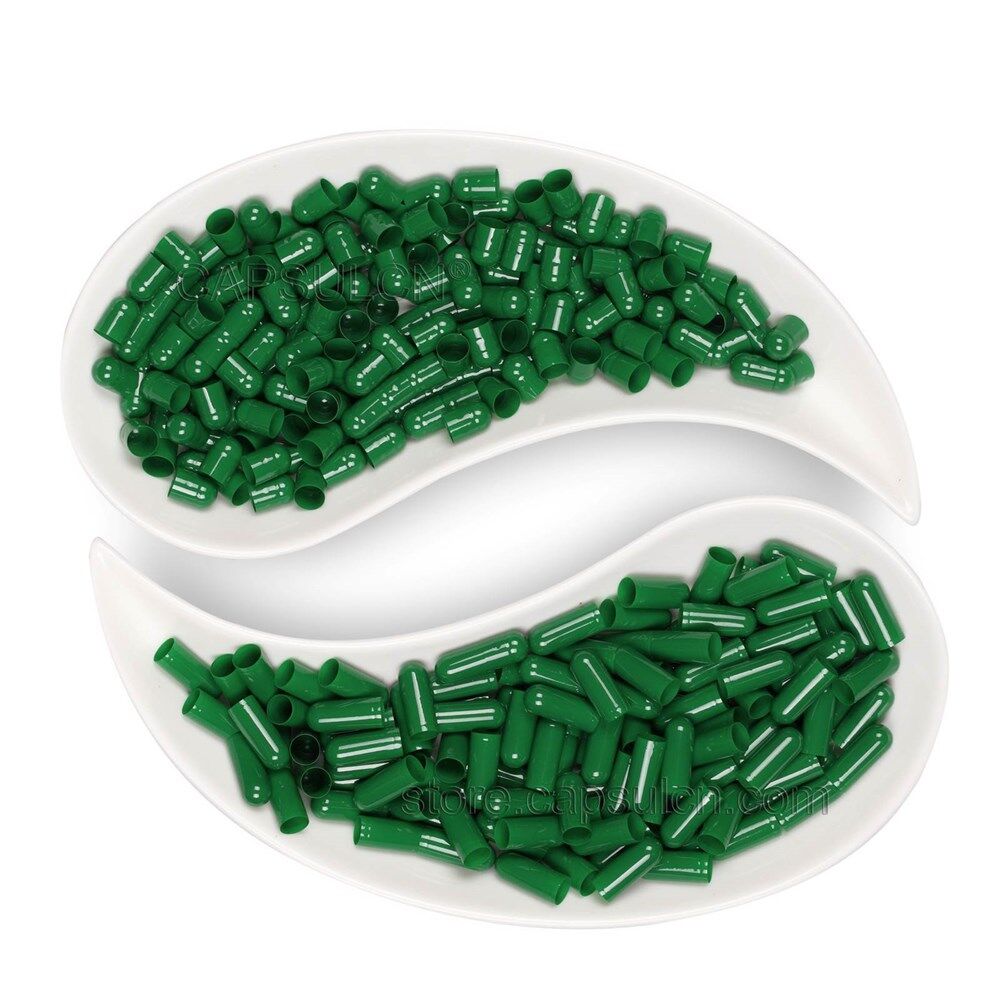 Size 00 dark green empty gelatin capsules 100% hide gelatin,derived from bovine raw materials Outstanding quality, in accordance with GMP standards Suitable for pharmaceuticals health and nutrition products Keep away from direct sunlight, hot water and high temperatures Do not fill capsules with any liquid suspension because they will dissolve prior to consumption