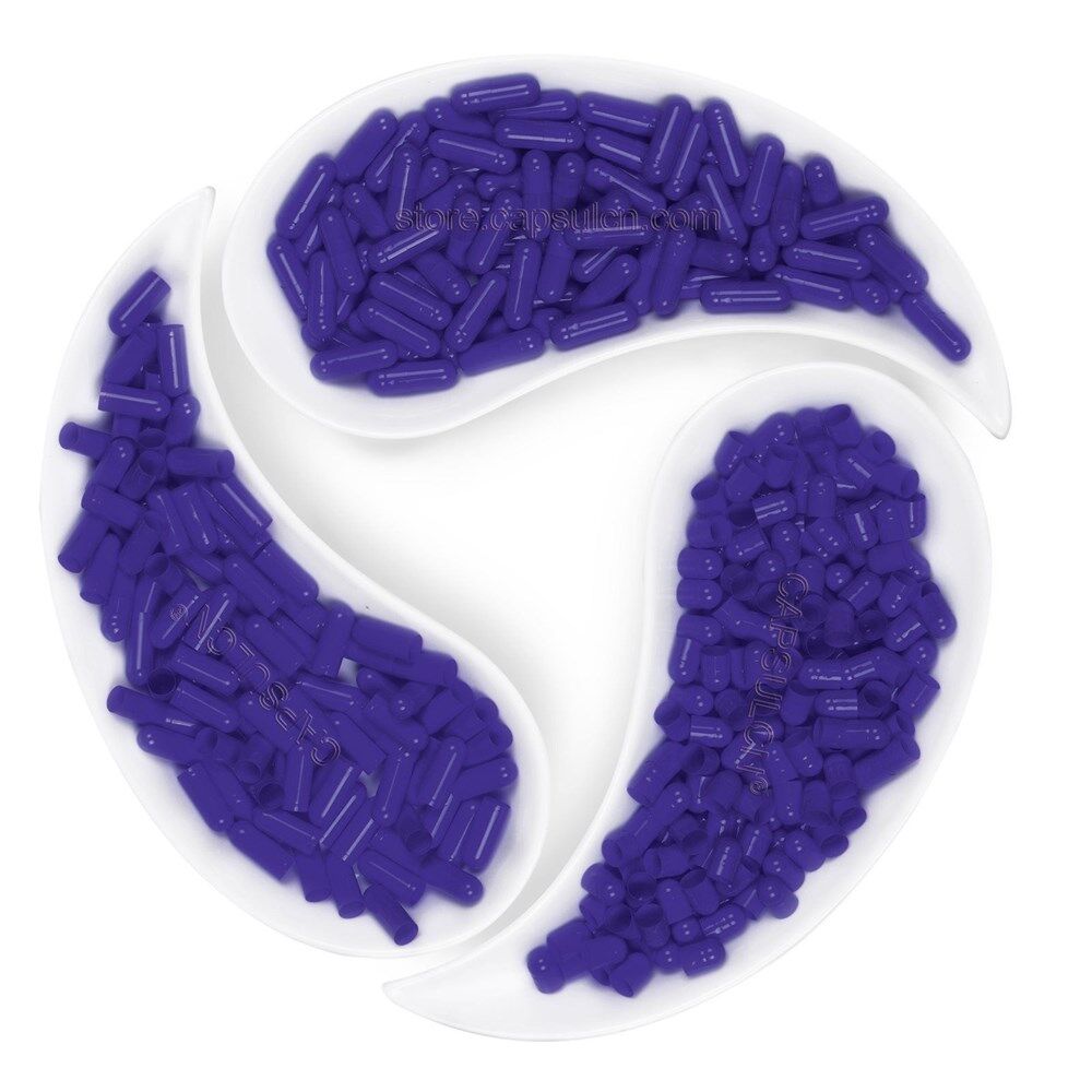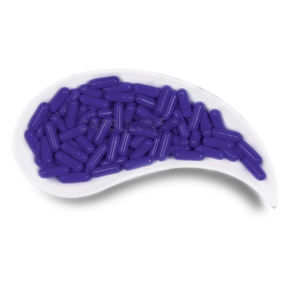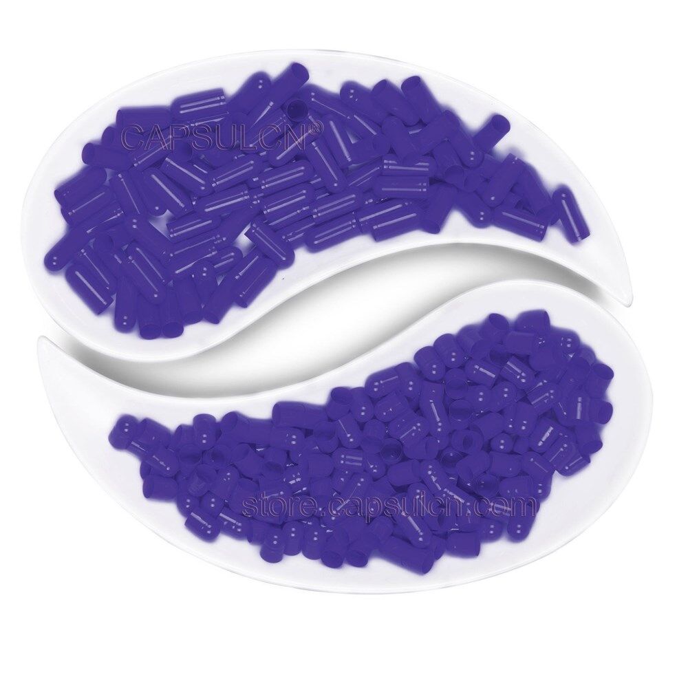 Size 00 purple empty gelatin capsules 100% hide gelatin,derived from bovine raw materials Outstanding quality, in accordance with GMP standards Suitable for pharmaceuticals health and nutrition products Keep away from direct sunlight, hot water and high temperatures Do not fill capsules with any liquid suspension because they will dissolve prior to consumption