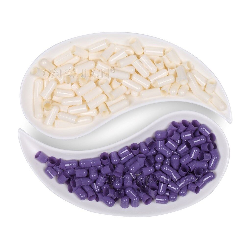 Size 00 purple white empty gelatin capsules 100% BSE Free (Derived from bovine raw materials) 100% Hide gelatin derived from the skin 100% Preservative Free Non GMO, Allergen Free, & Gluten Free Outstanding quality, in accordance with GMP standards