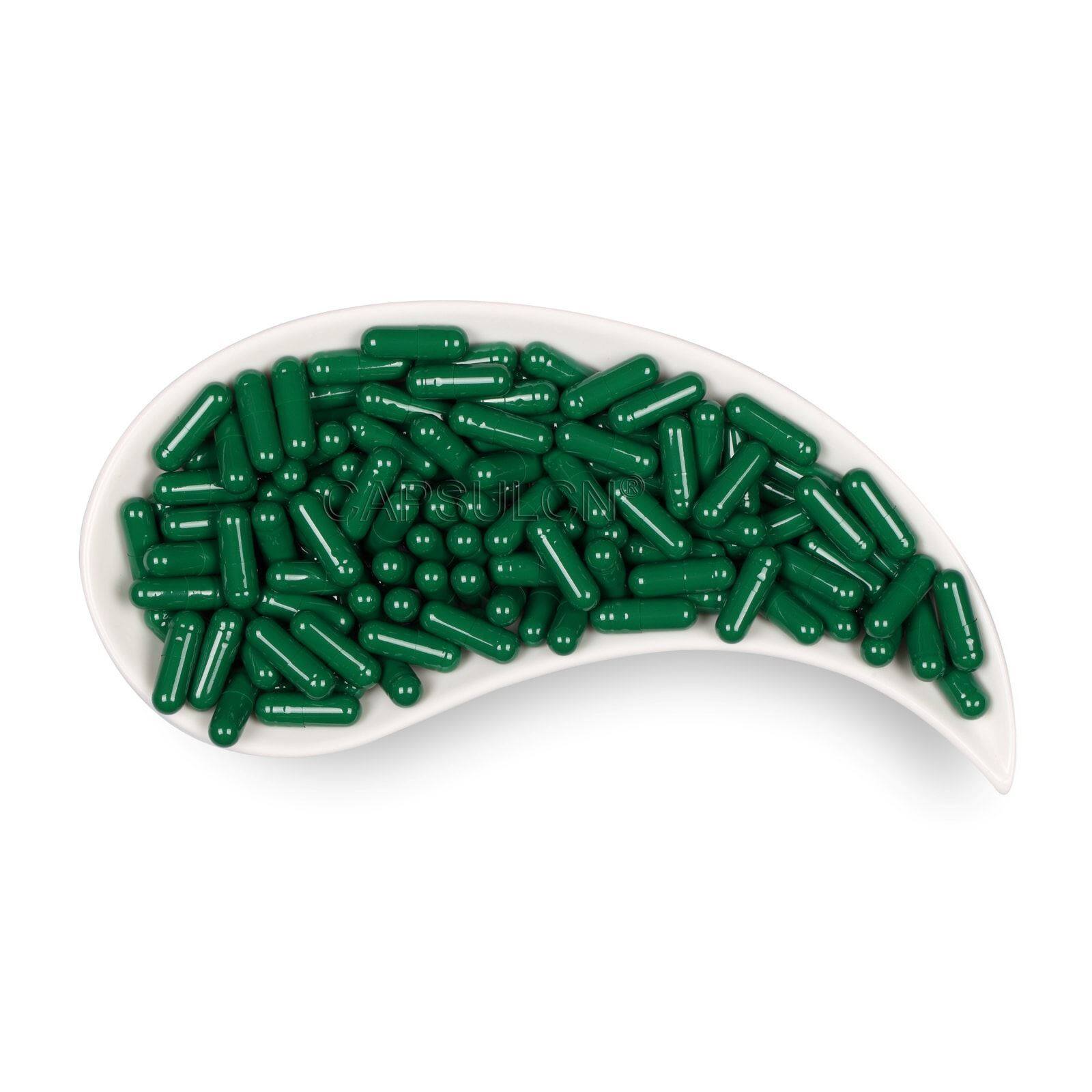 Size 000 dark green empty gelatin capsules 100% hide gelatin,derived from bovine raw materials Outstanding quality, in accordance with GMP standards Suitable for pharmaceuticals health and nutrition products Keep away from direct sunlight, hot water and high temperatures Do not fill capsules with any liquid suspension because they will dissolve prior to consumption