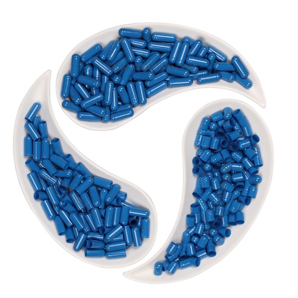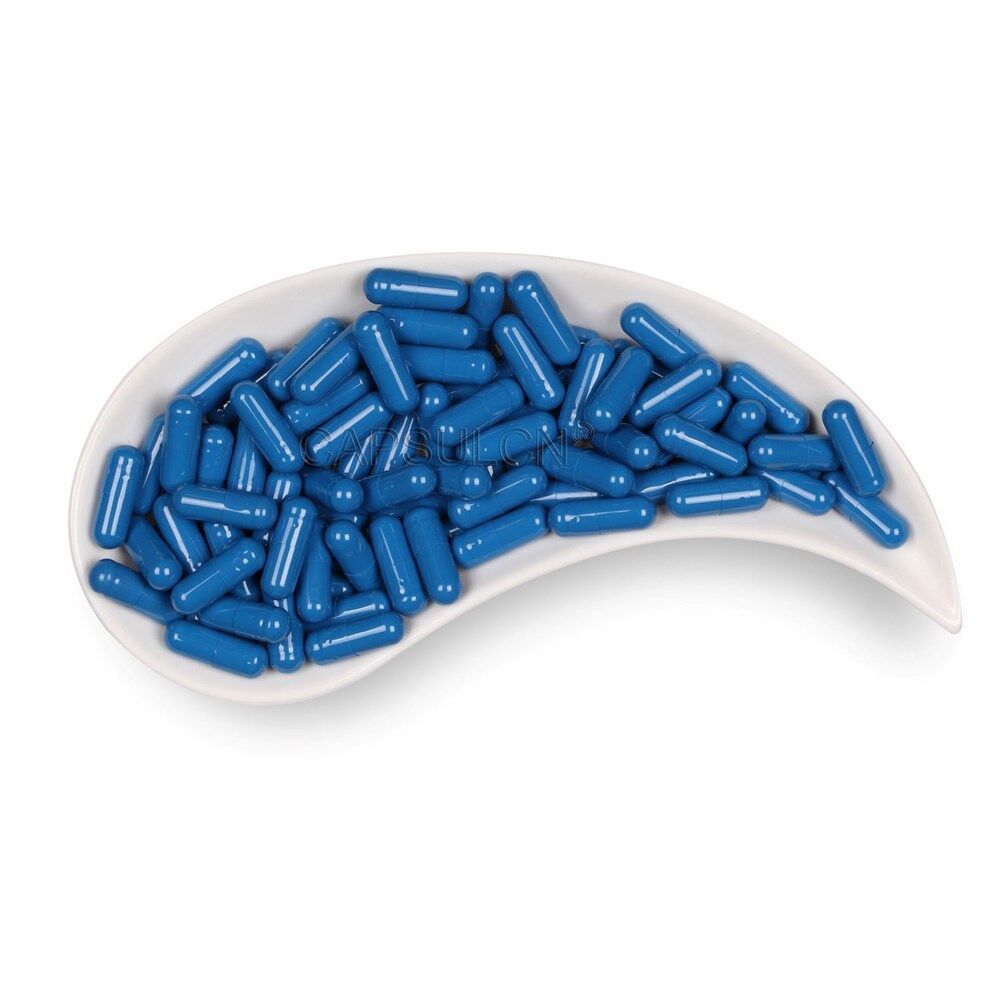 Size 1 blue empty gelatin capsules 100% hide gelatin,derived from bovine raw materials Outstanding quality, in accordance with GMP standards Suitable for pharmaceuticals health and nutrition products Keep away from direct sunlight, hot water and high temperatures Do not fill capsules with any liquid suspension because they will dissolve prior to consumption
