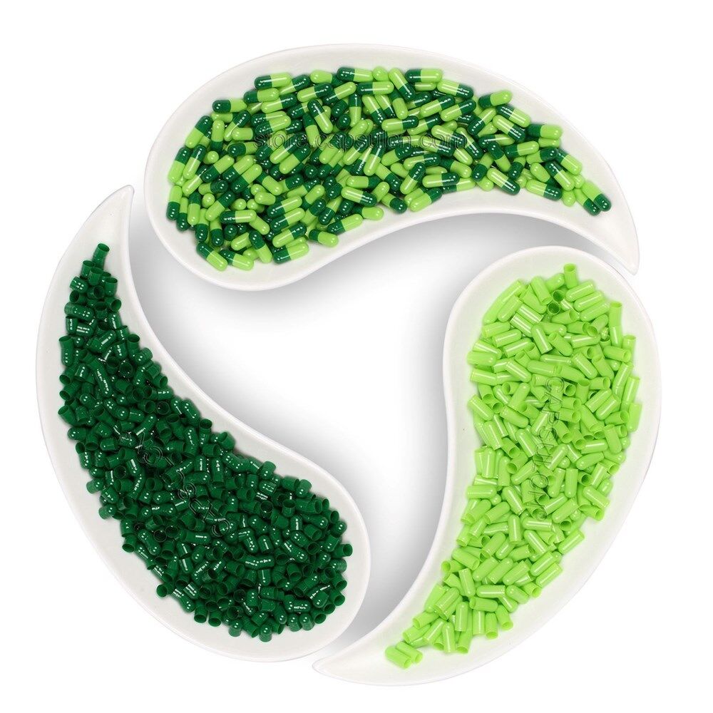 Size 1 dark green lawn green empty gelatin capsules 100% hide gelatin,derived from bovine raw materials Outstanding quality, in accordance with GMP standards Suitable for pharmaceuticals health and nutrition products Keep away from direct sunlight, hot water and high temperatures Do not fill capsules with any liquid suspension because they will dissolve prior to consumption