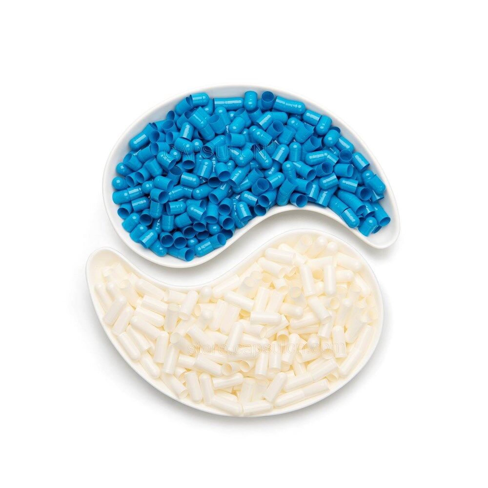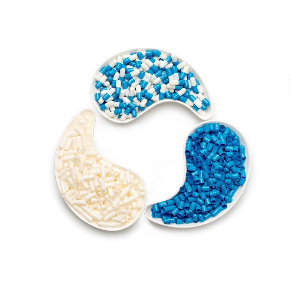 Size 1 blue white empty gelatin capsules 100% BSE Free (Derived from bovine raw materials) 100% Hide gelatin derived from the skin 100% Preservative Free Non GMO, Allergen Free, & Gluten Free Outstanding quality, in accordance with GMP standards