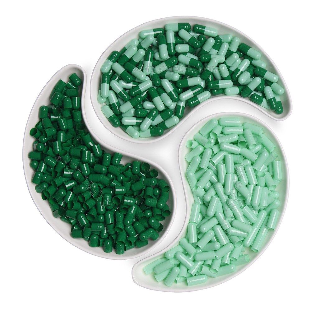 Size 1 dark green light green empty gelatin capsules
