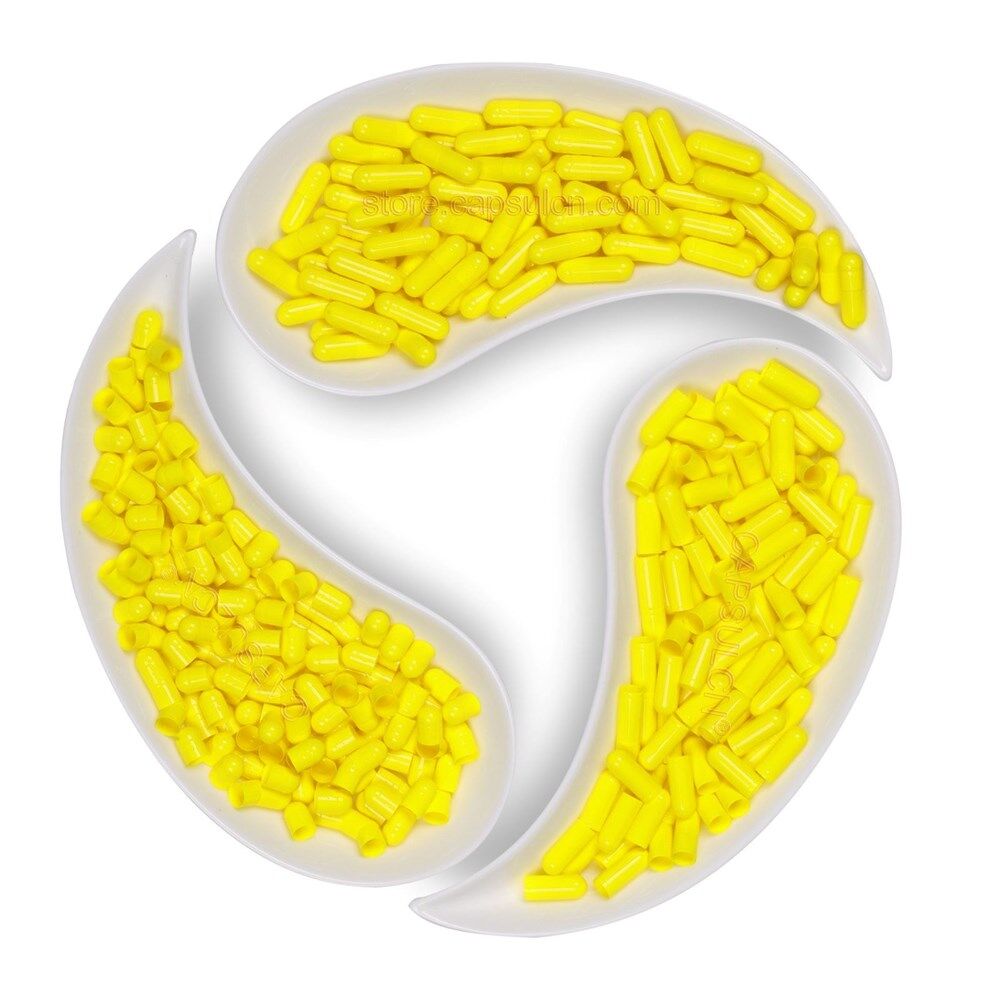 Size 1 yellow empty gelatin capsules 100% hide gelatin,derived from bovine raw materials Outstanding quality, in accordance with GMP standards Suitable for pharmaceuticals health and nutrition products Keep away from direct sunlight, hot water and high temperatures Do not fill capsules with any liquid suspension because they will dissolve prior to consumption