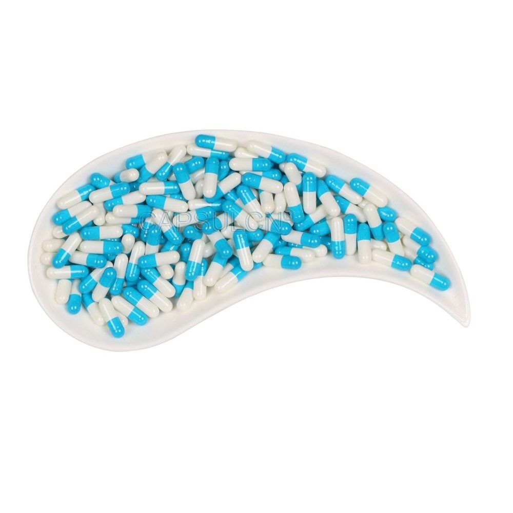 Size 4 blue white empty gelatin capsules 100% BSE Free (Derived from bovine raw materials) 100% Hide gelatin derived from the skin 100% Preservative Free Non GMO, Allergen Free, & Gluten Free Outstanding quality, in accordance with GMP standards