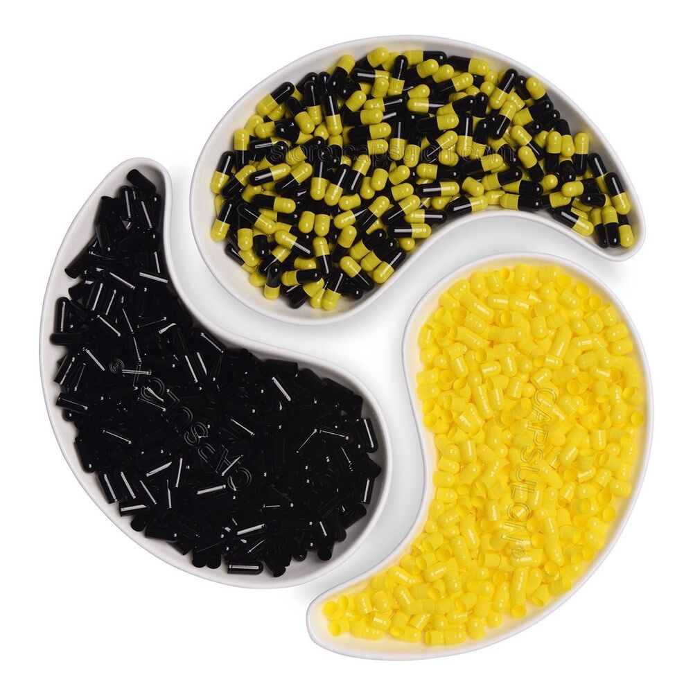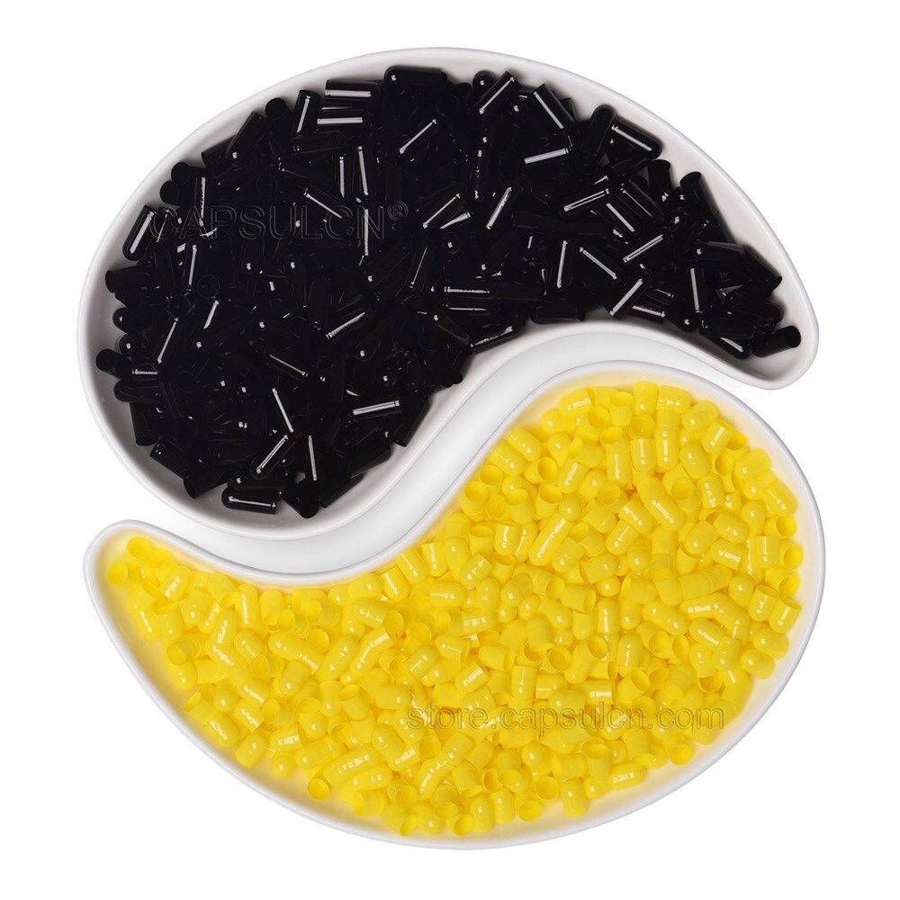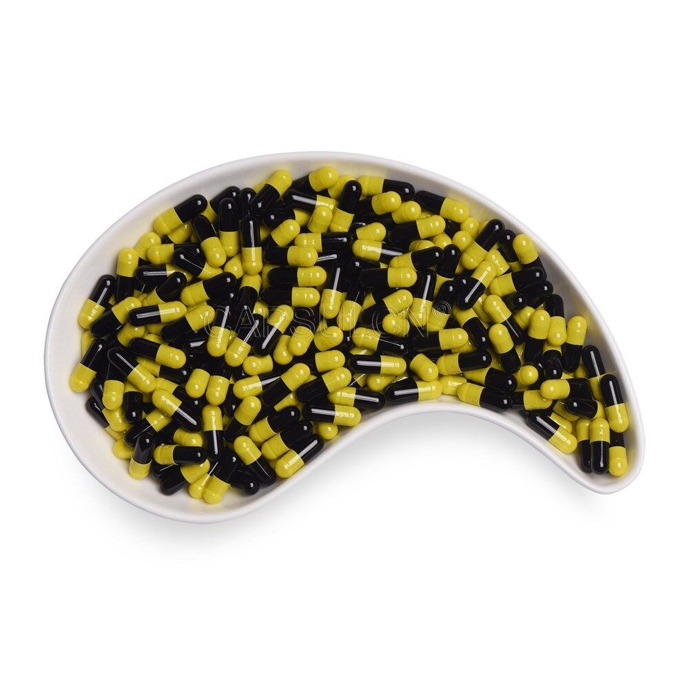 Size 4 yellow black empty gelatin capsules variety of colors/sizes available cost effective solution for quality control of ingredients improve product recognition protect ingredients from light & hide unpleasant taste or appearance