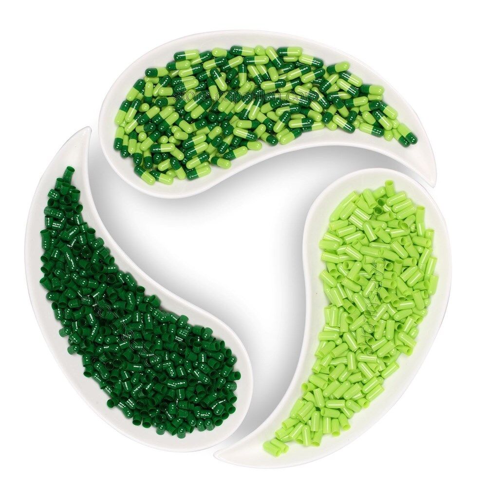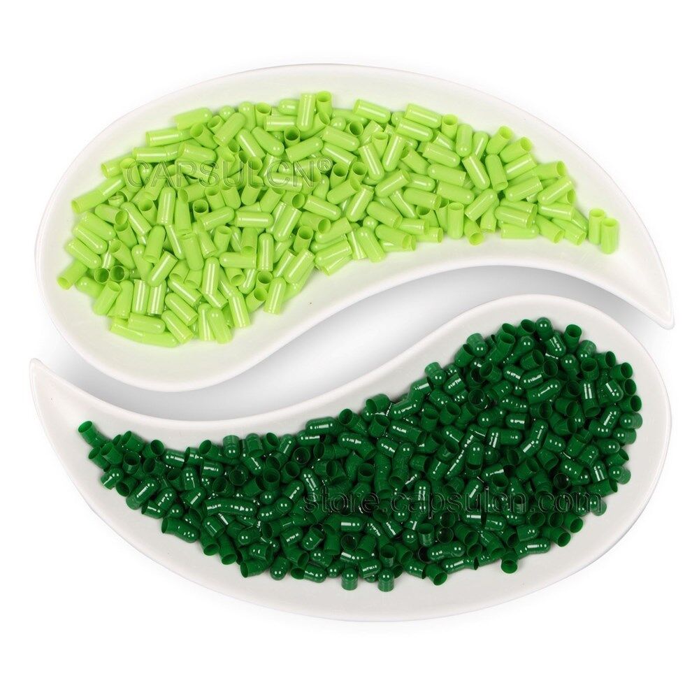 Size 4 dark green light green empty gelatin capsules 100% hide gelatin,derived from bovine raw materials Outstanding quality, in accordance with GMP standards Suitable for pharmaceuticals health and nutrition products Keep away from direct sunlight, hot water and high temperatures Do not fill capsules with any liquid suspension because they will dissolve prior to consumption