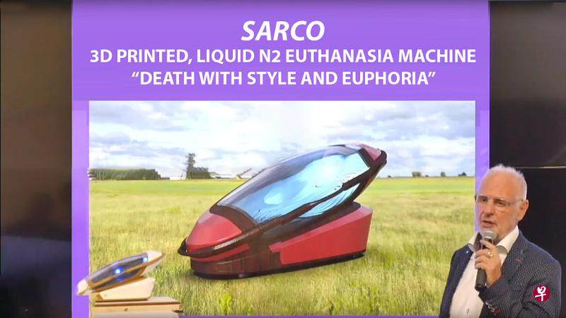 The "suicide capsule" is called "Sarco" and is the abbreviation of "sarcophagus" in English. It was invented by Australian doctor Nikick and Dutch designer Bannick.